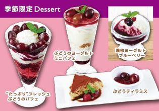 フレッシュぶどうパフェや栄養満点の野菜ドリアなど、トマト&オニオン4店舗にて秋の味覚を揃えたバイ…