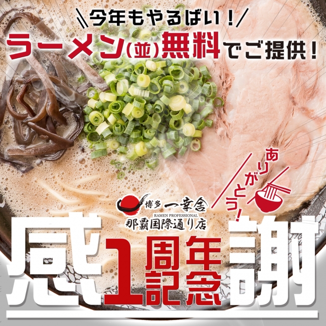 豚骨ラーメン専門店『博多一幸舎 那覇国際通り店』。1周年の感謝の気持ちを込めて、 2018年10…
