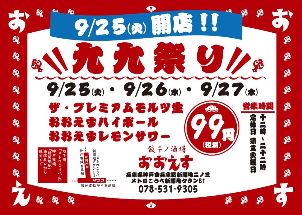 新店舗「餃子ノ酒場おおえすメトロこうべ店」2018年9月25日(火)グランドオープン!!