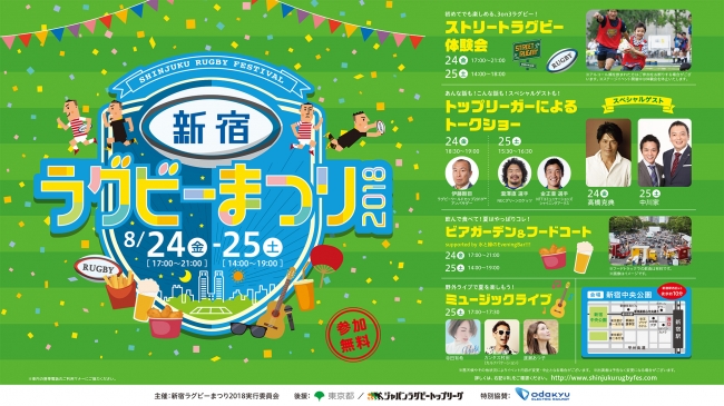 8月24日(金)、25日(土) 真夏の新宿オフィス街にラグビーグラウンドが出現!新宿中央公園で「新宿ラグビーまつり2018」初開催