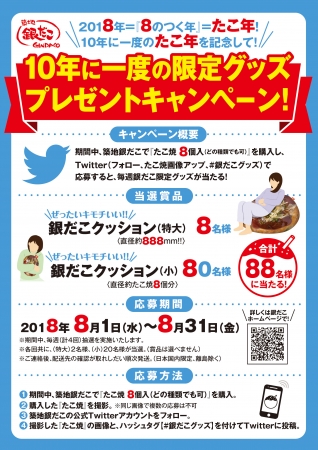 築地銀だこ 2018年8月の限定イベント! 『10年に一度の限定グッズ プレゼントキャンペーン』 を実施!!