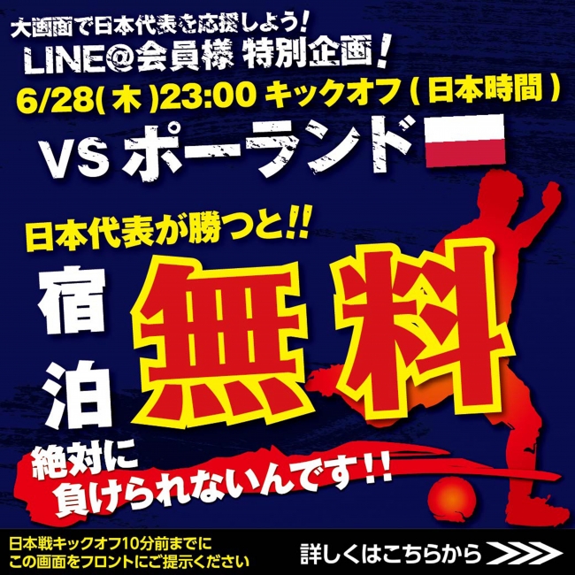 「日本が勝ったら宿泊無料!!」絶対に負けられない戦いがあるんです!SAMURAI BLUE応援イベントをポーランド戦に向けて実施!!