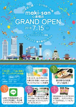 シンガポール発“カスタマイズ”する巻き寿司専門店 『maki-san』が大阪心斎橋に7/15オープン決定!